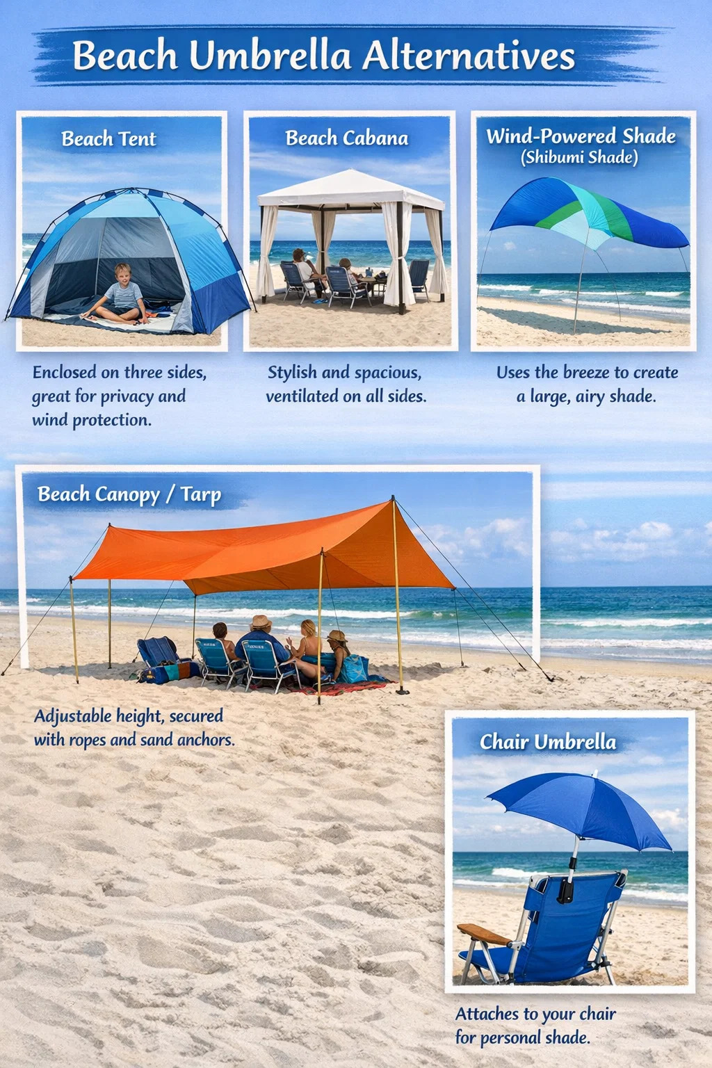 Se ritieni che trasportare o montare un ombrellone sia troppo problematico, o temi che venga portato via dal vento, sul mercato sono disponibili molte alternative più stabili con aree ombreggiate più ampie.