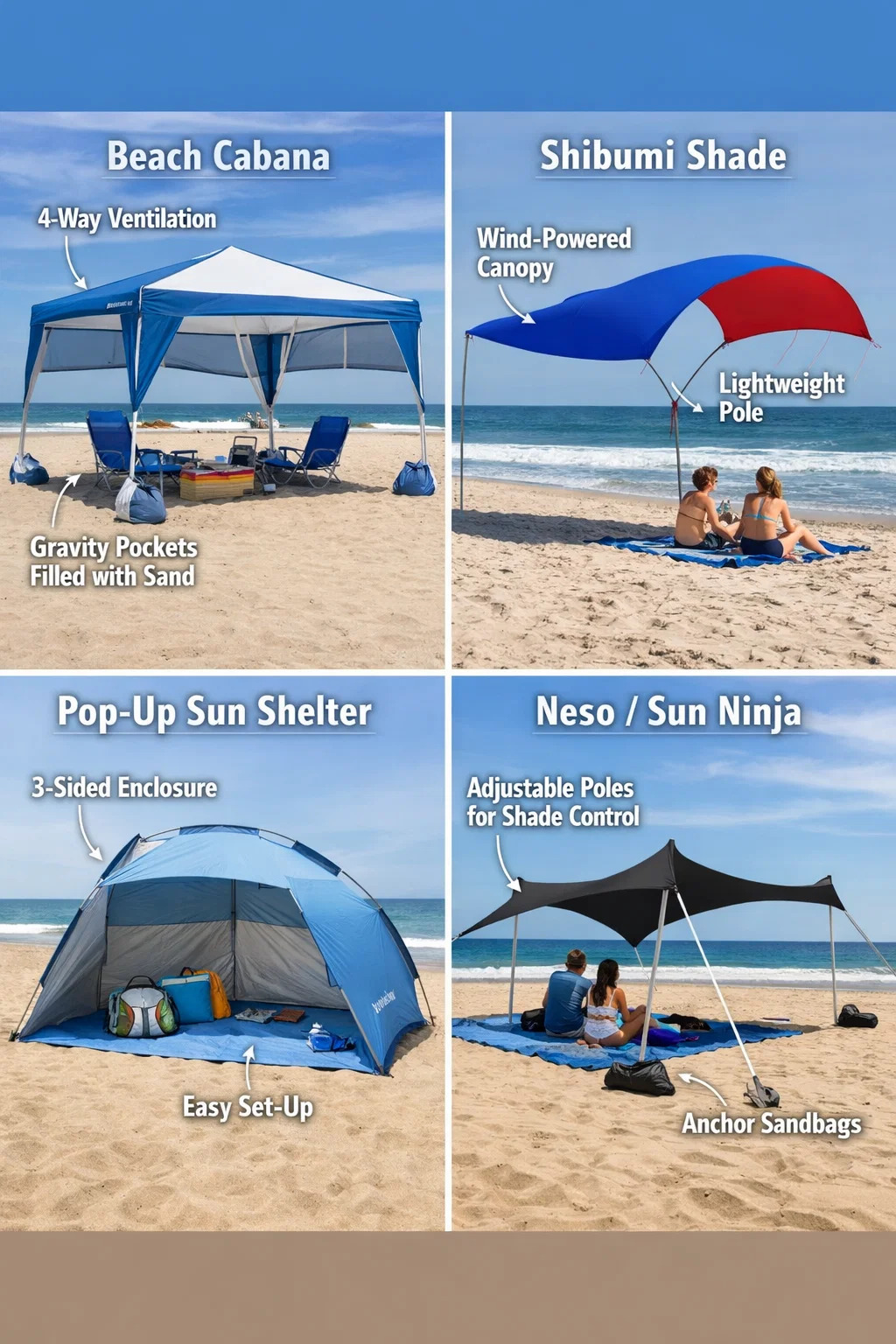 Mentre ombrelloni da spiaggia sono classici, se stai cercando un'esperienza di protezione solare più stabile, spaziosa o moderna, le seguenti opzioni offrono una protezione superiore in molti modi: